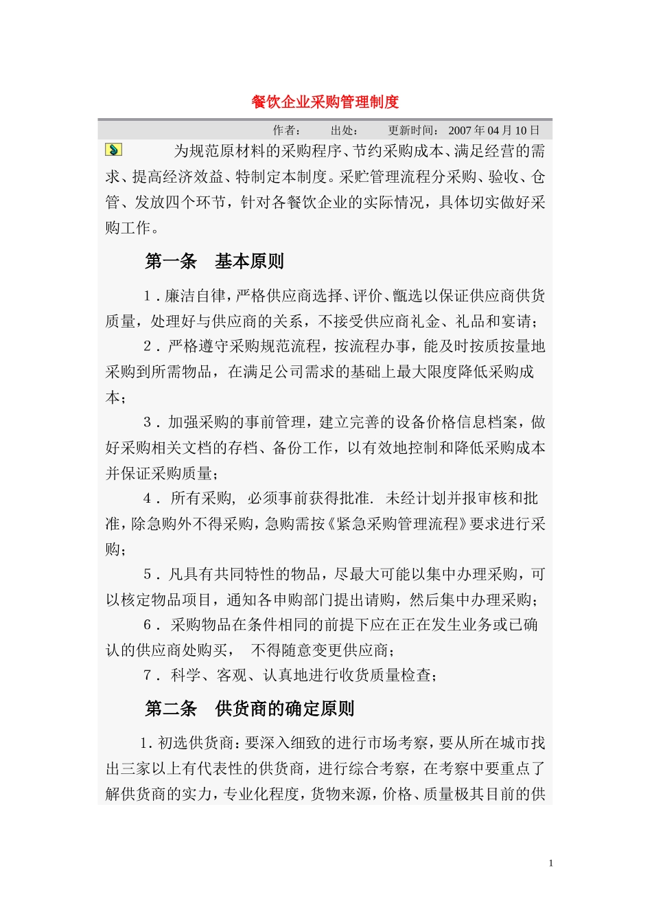 餐饮企业采购管理制度.doc_第1页