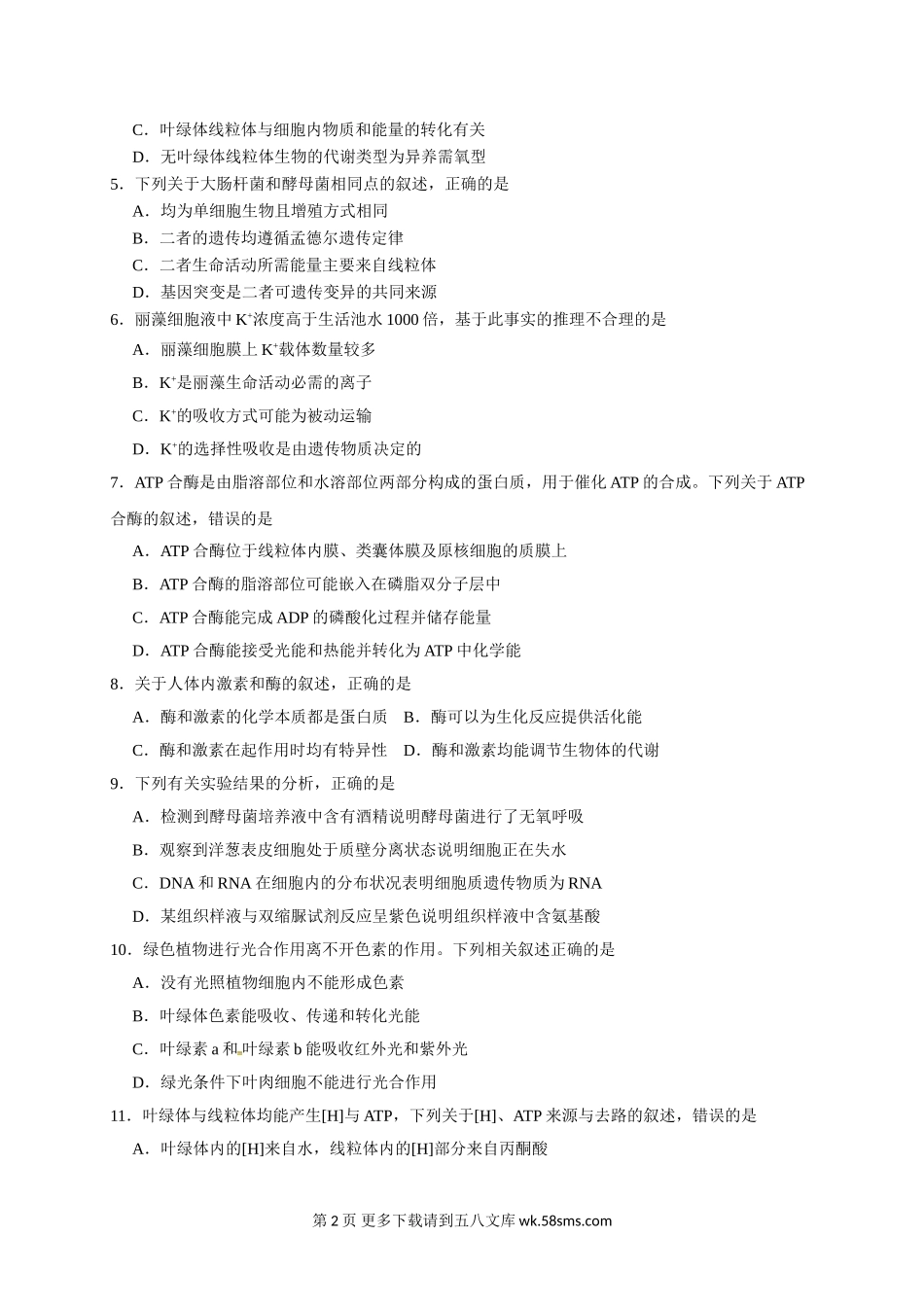 天津市五区县高三上学期生物期末试卷及答案.doc_第2页