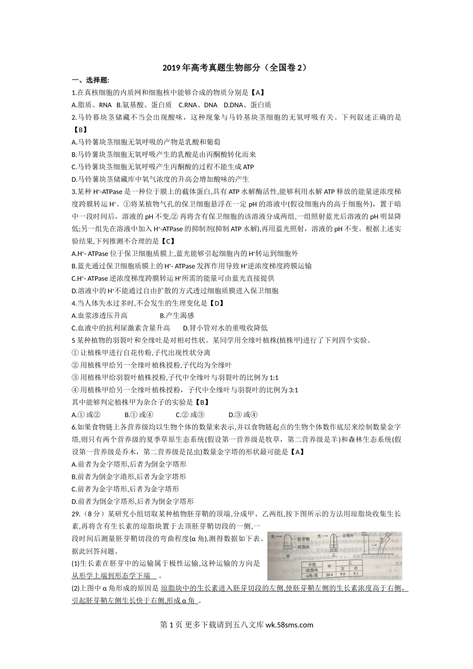 2019年高考理综生物全国2卷含答案.doc_第1页