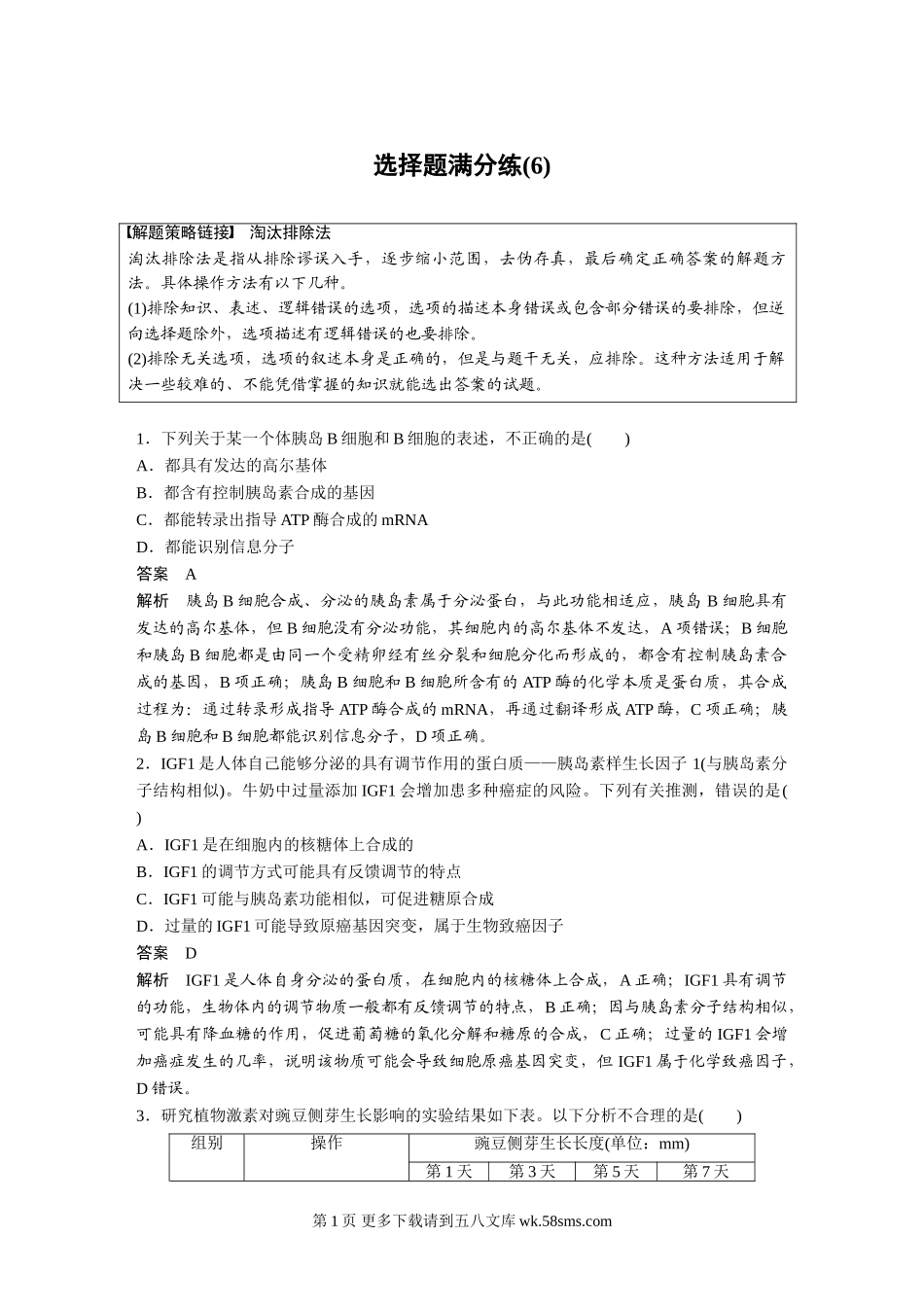 选择题满分练(6)解题策略链接淘汰排除法淘汰排除法是指从排除谬误入手,逐步缩小范围,去伪存真,最后确定正确答案的解题方法。具体操作方法有以下几种。(1)排除知识、表述、逻辑错误的选项,选项的描述本身错误...
