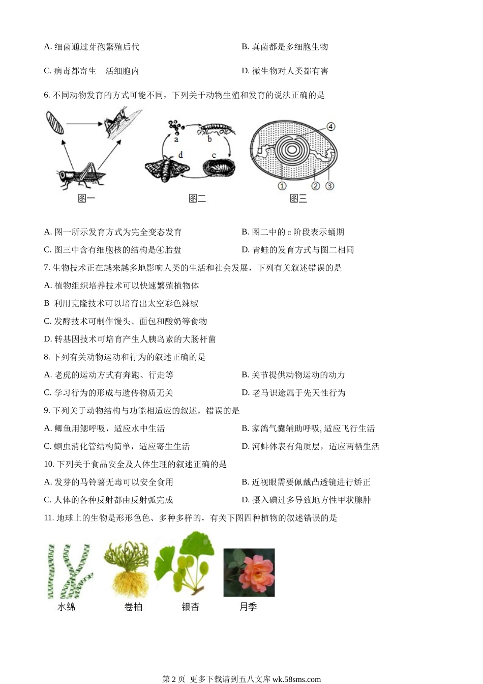 河北省保定市2018年初中毕业生升学文化课考试生物试卷(原卷版).docx_第2页