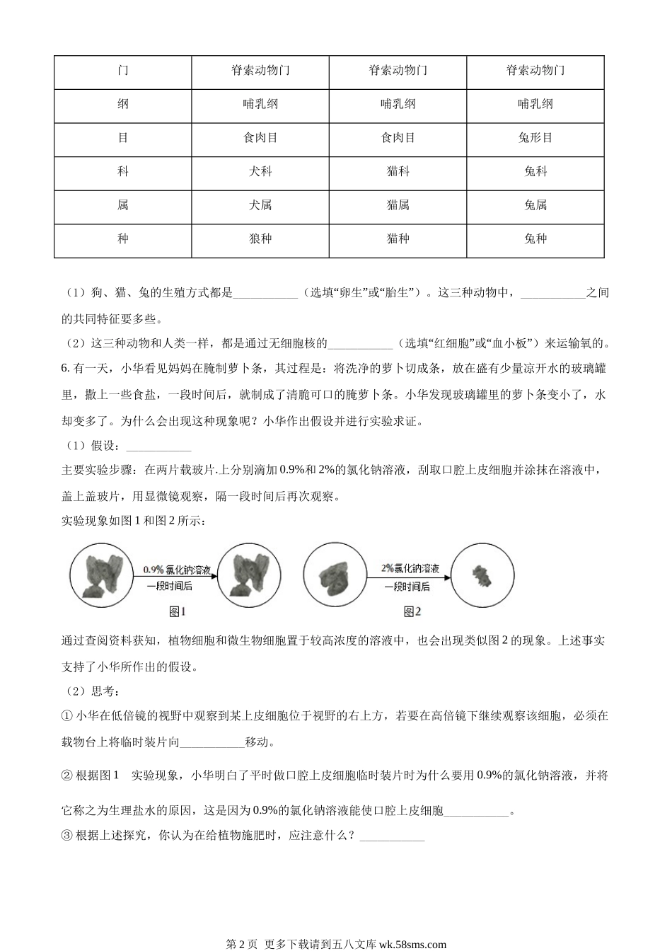 2022年浙江省湖州市中考生物真题(原卷版).docx_第2页