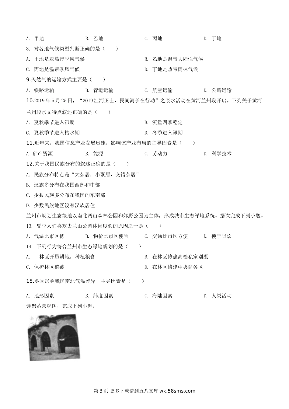 甘肃省兰州市2019年中考地理试题(原卷版).doc_第3页