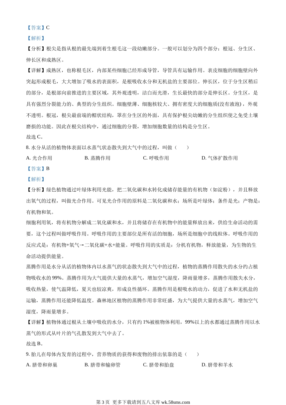 2022年黑龙江省绥化市中考生物真题(解析版).docx_第3页