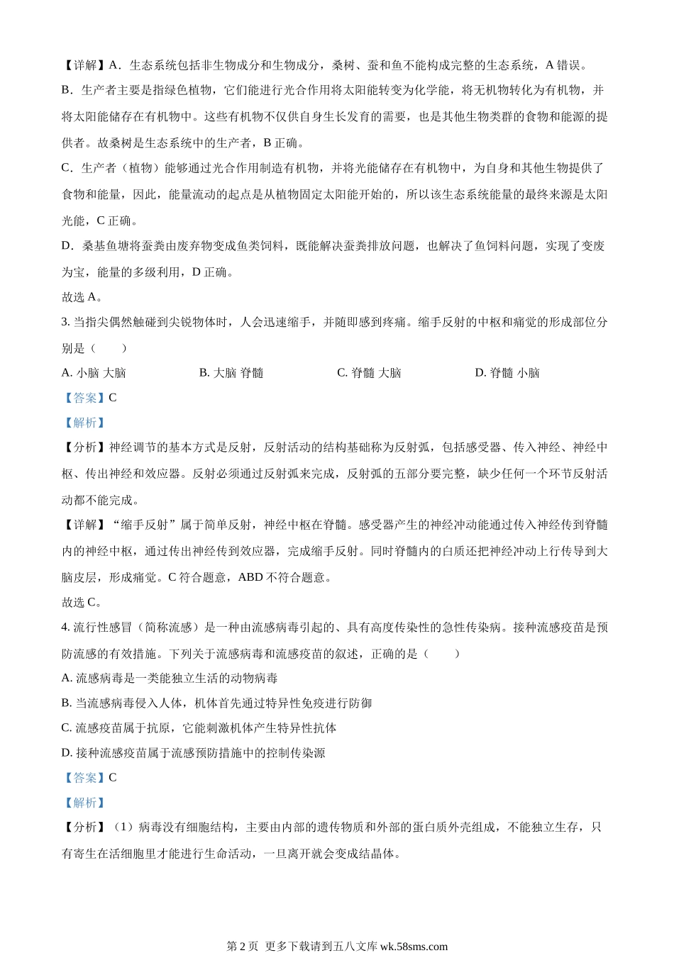 2023年四川省泸州市中考生物真题(解析版).docx_第2页