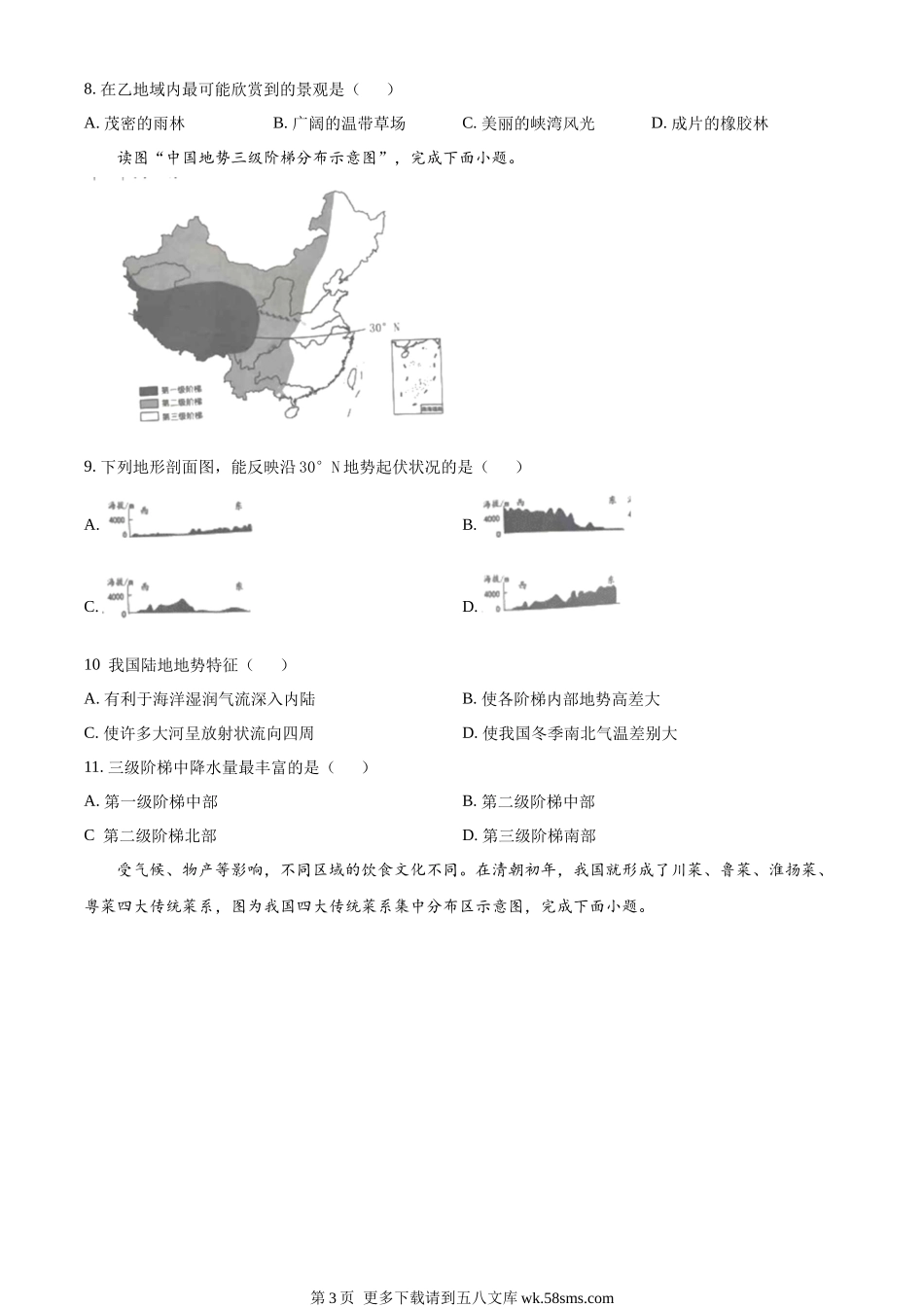 2023年四川省雅安市中考地理真题(原卷版).docx_第3页