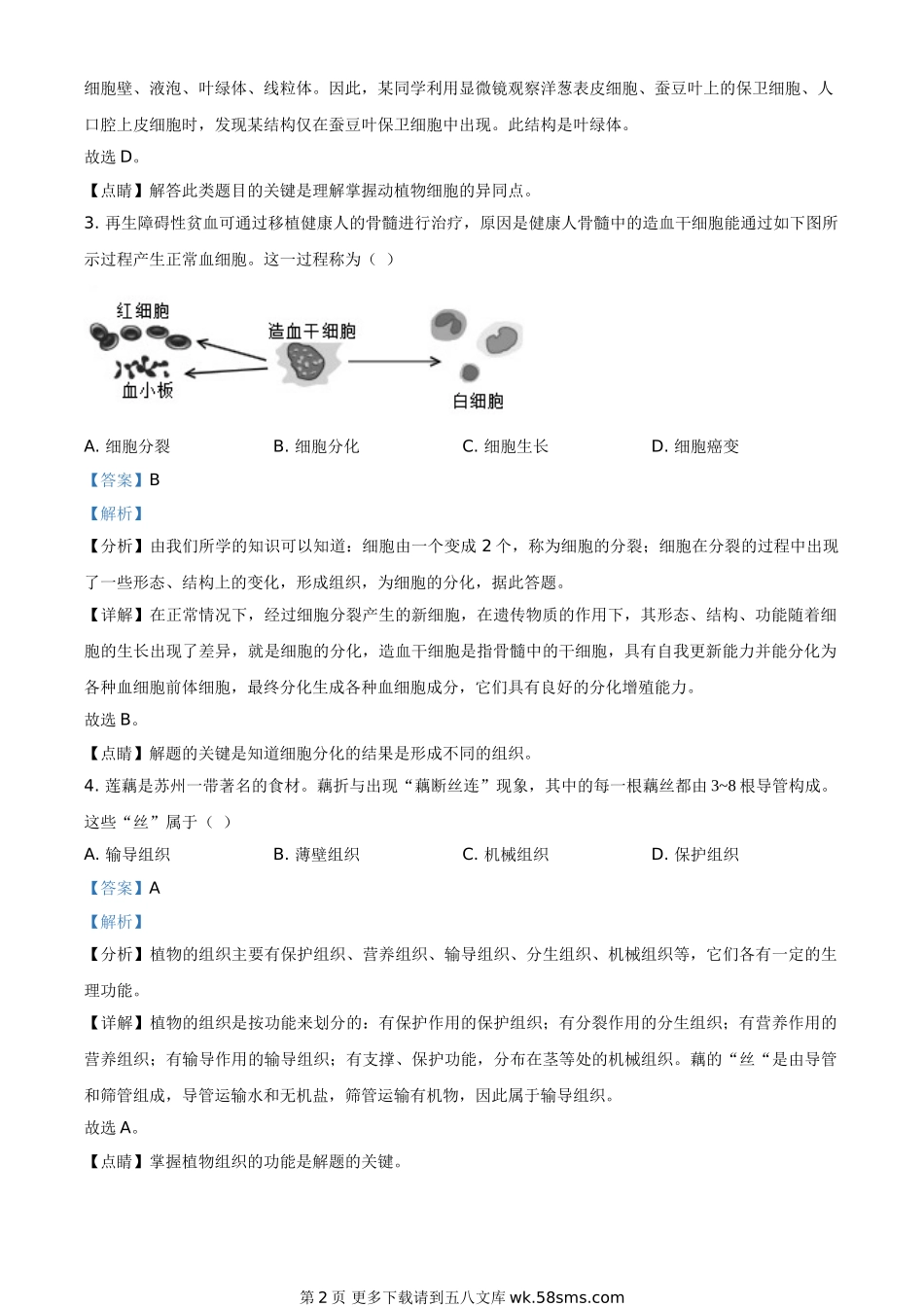江苏省苏州市2021年初中结业考试生物试题(解析版).doc_第2页
