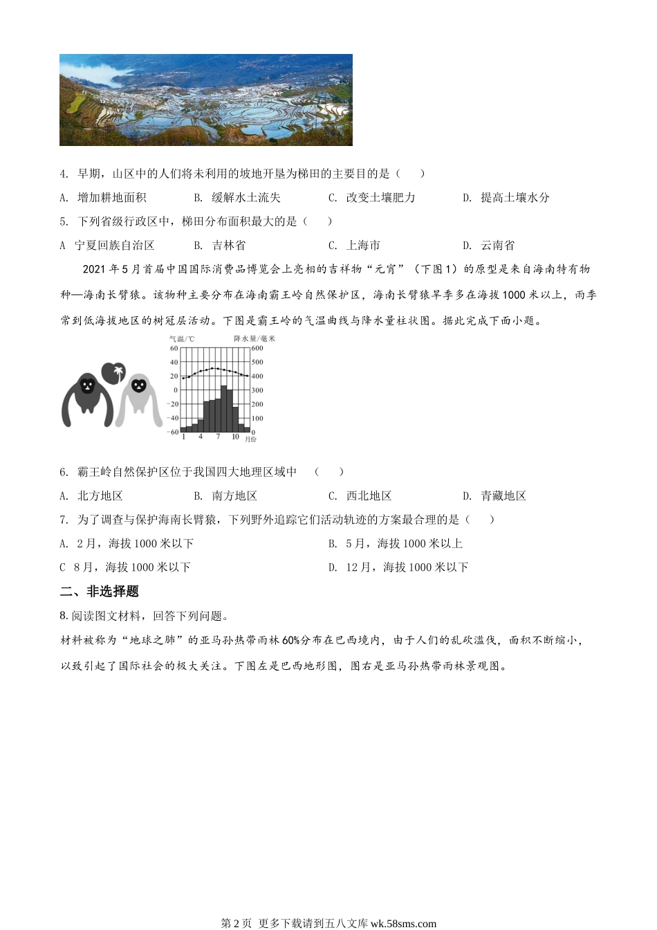 2022年湖北省随州市中考地理真题(原卷版).docx_第2页