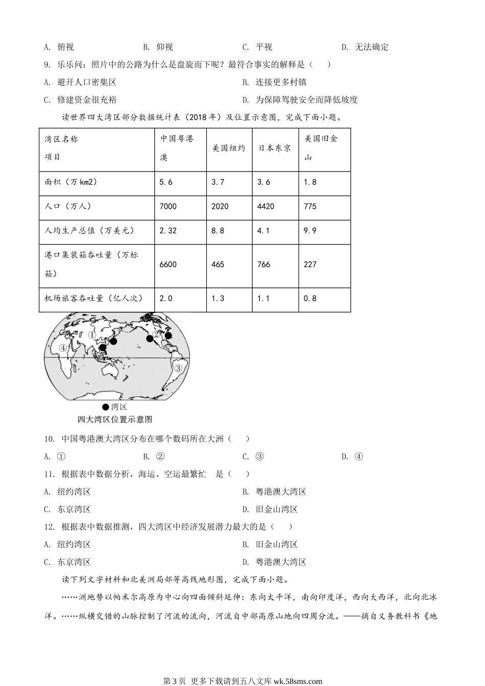 2022年四川省乐山市中考地理真题(原卷版).docx_第3页