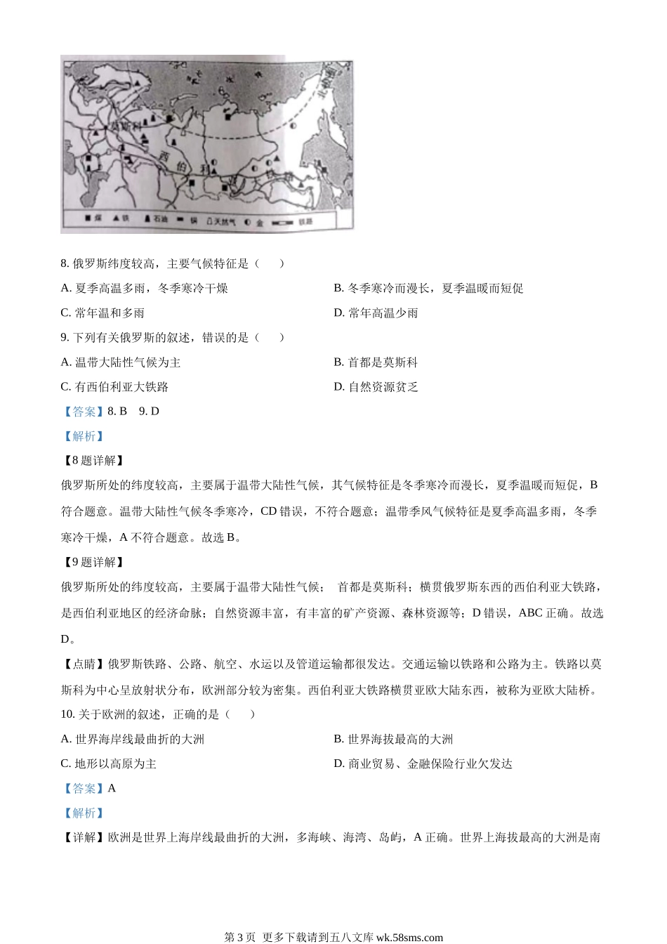 2022年黑龙江省哈尔滨市中考地理真题(解析版).docx_第3页