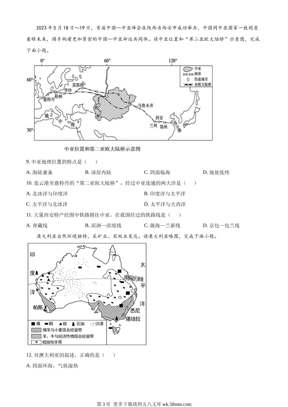 2023年山东省济宁市中考地理真题(原卷版).docx_第3页