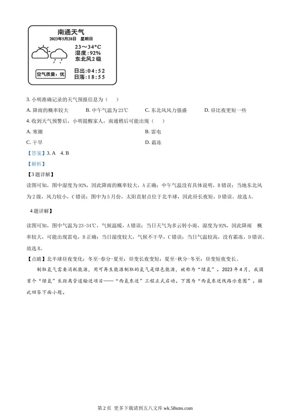 2023年江苏省南通市中考地理真题(解析版).docx_第2页