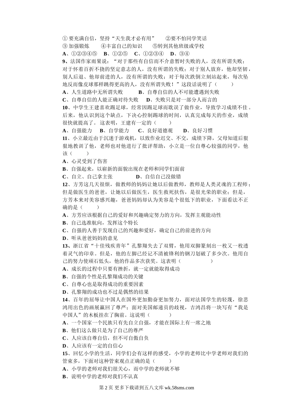 七年级思想品德第二学期期中考试题.doc_第2页