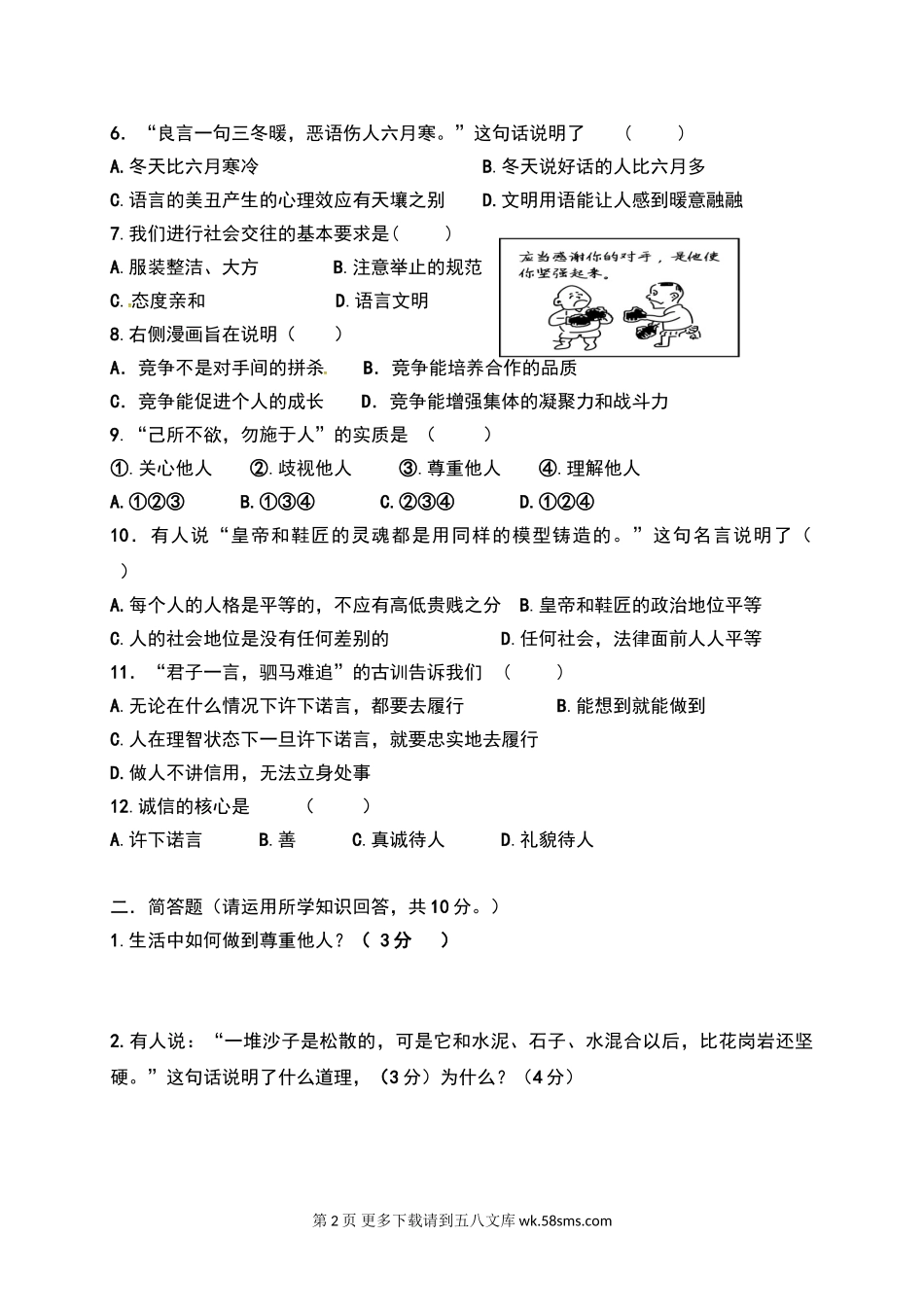 乌拉特前旗联考上学期八年级政治期末考试题及答案.doc_第2页