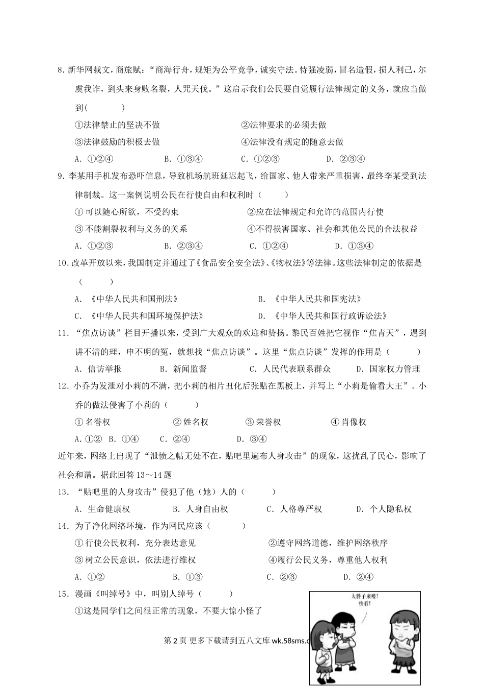 厦门市同安区八年级第二学期政治期中试卷及答案.doc_第2页