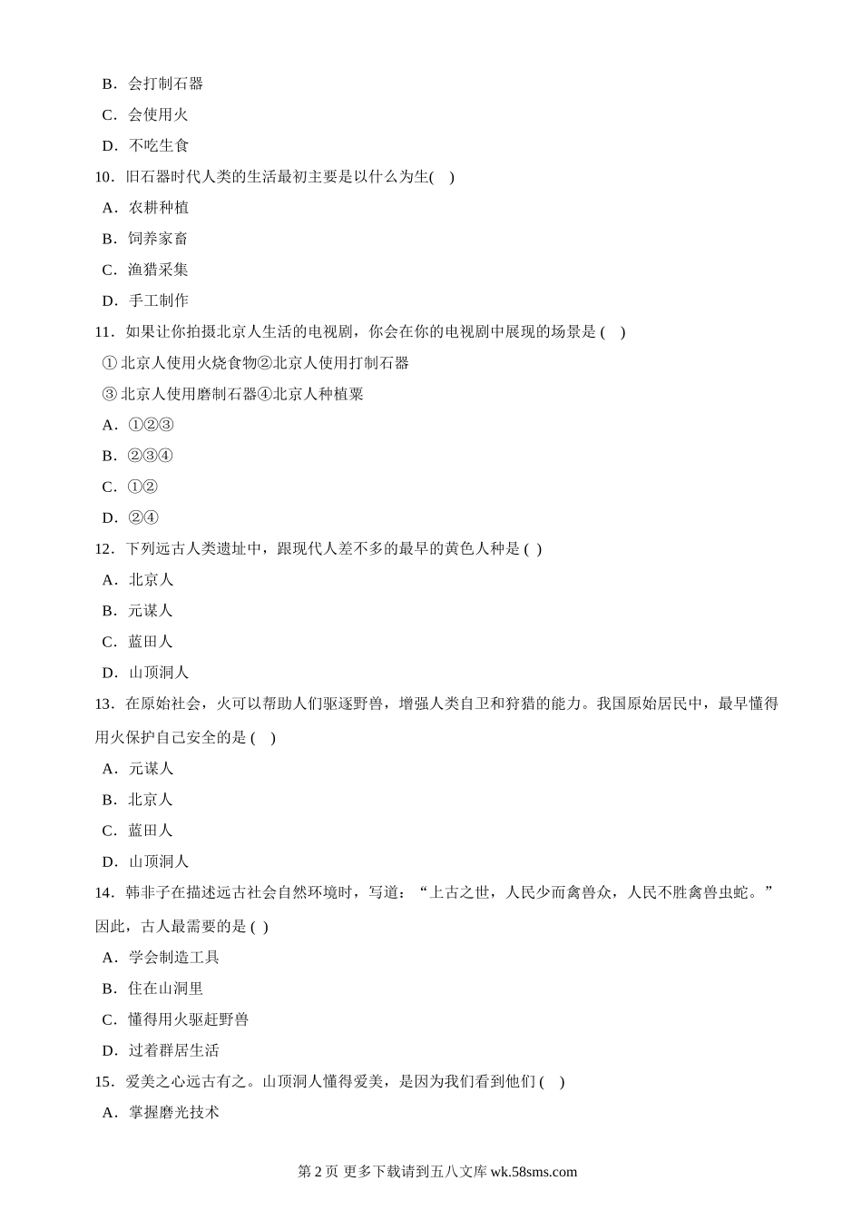 第1课《中华大地的远古人类》同步测试8(北师大版历史七上).doc_第2页