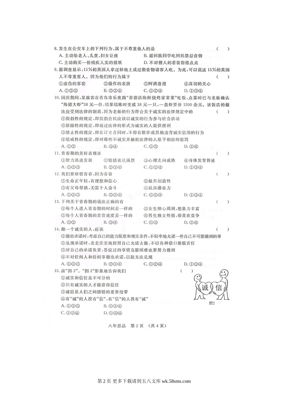 第1页更多下载请到五八文库wk.58sms.com第2页更多下载请到五八文库wk.58sms.com第3页更多下载请到五八文库wk.58sms.com八年级思想品德参考答案及评分标准1.A2.D3.A4.B5.D6.C7.A8.B9.A10.B11.D12.C13.D14.A15.A16....
