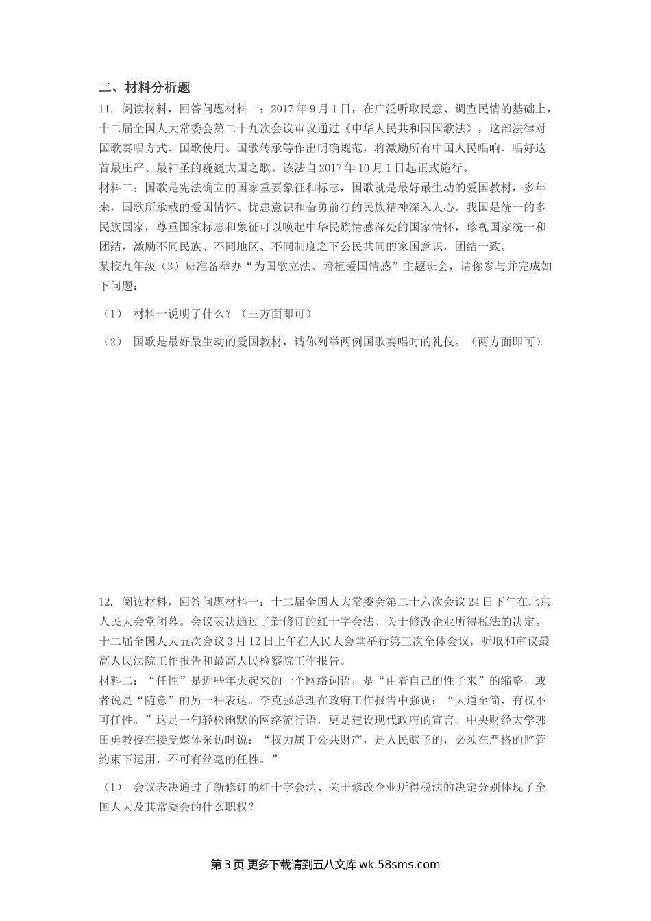 6.1国家权力机关同步练习题及答案.doc_第3页