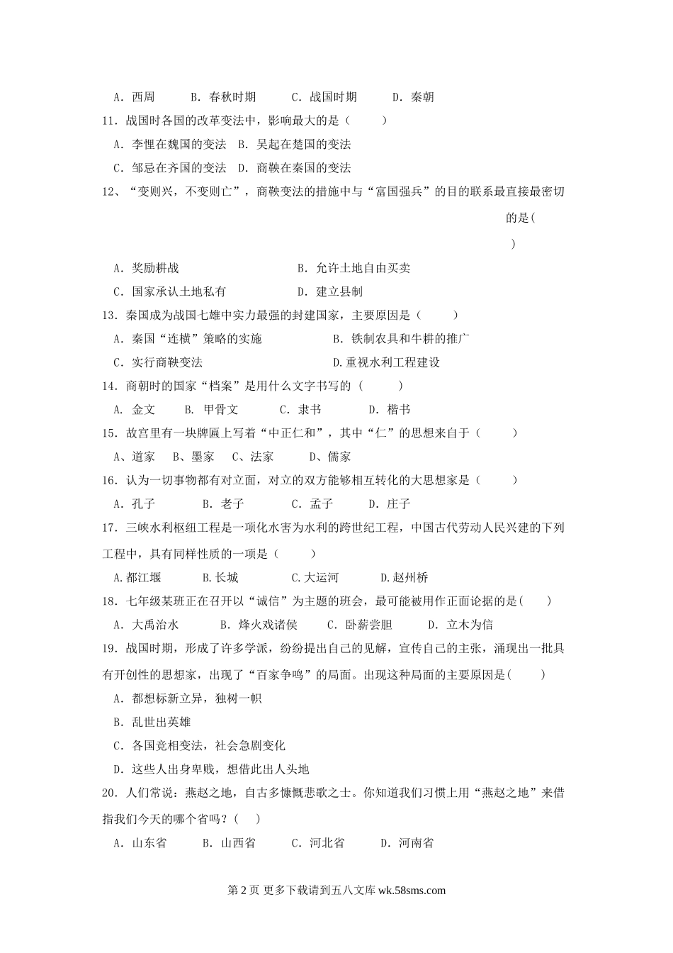 七年级历史上册第二单元测试题2.doc_第2页