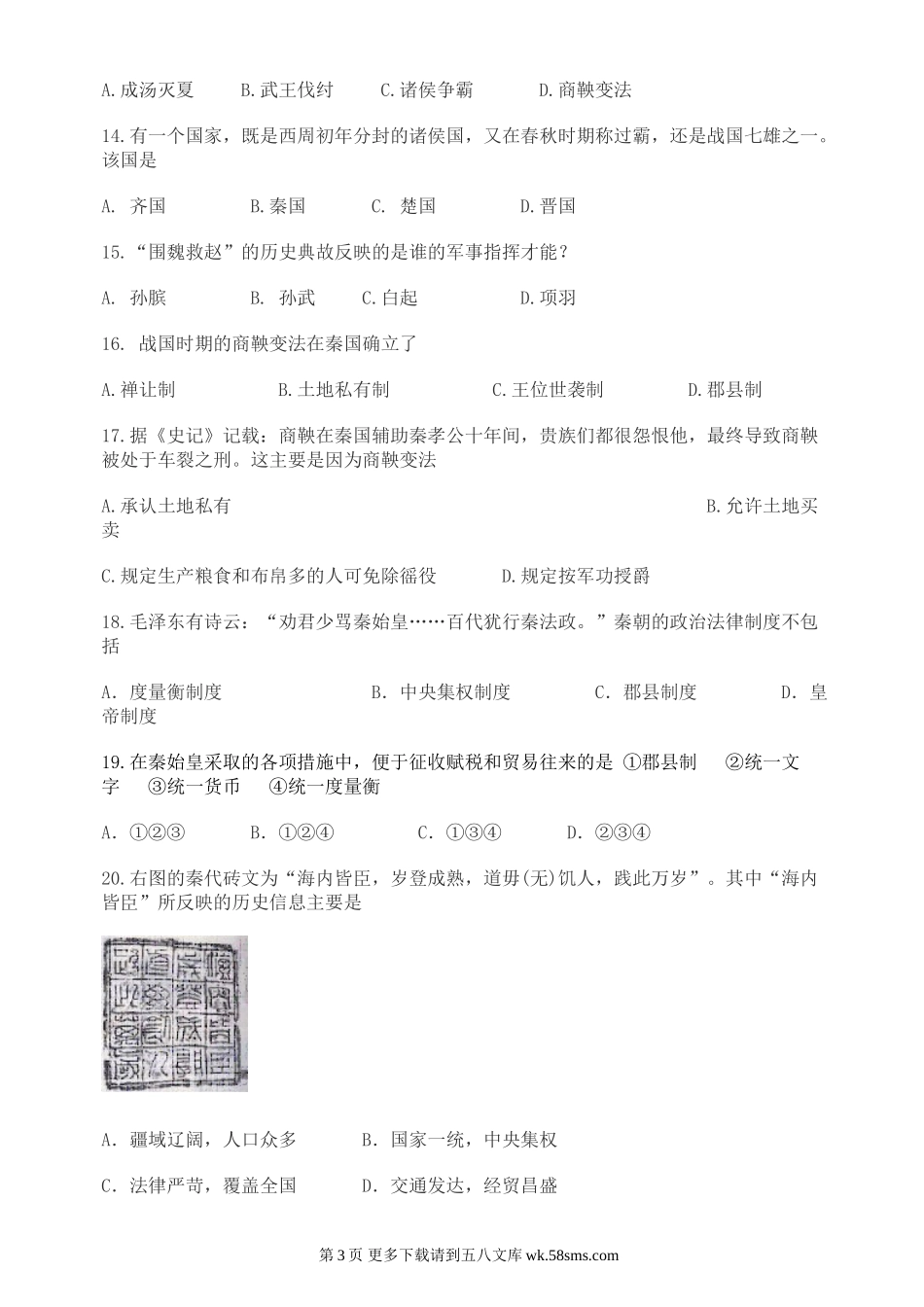 七年级第一学期期中考试历史试题.doc_第3页