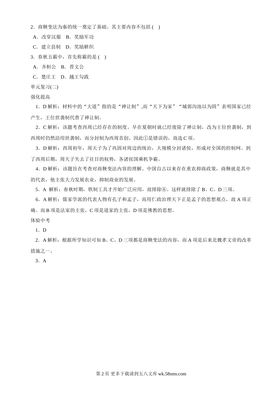 第二单元《国家的产生和社会的变革》单元测试5(北师大版历史七上).doc_第2页