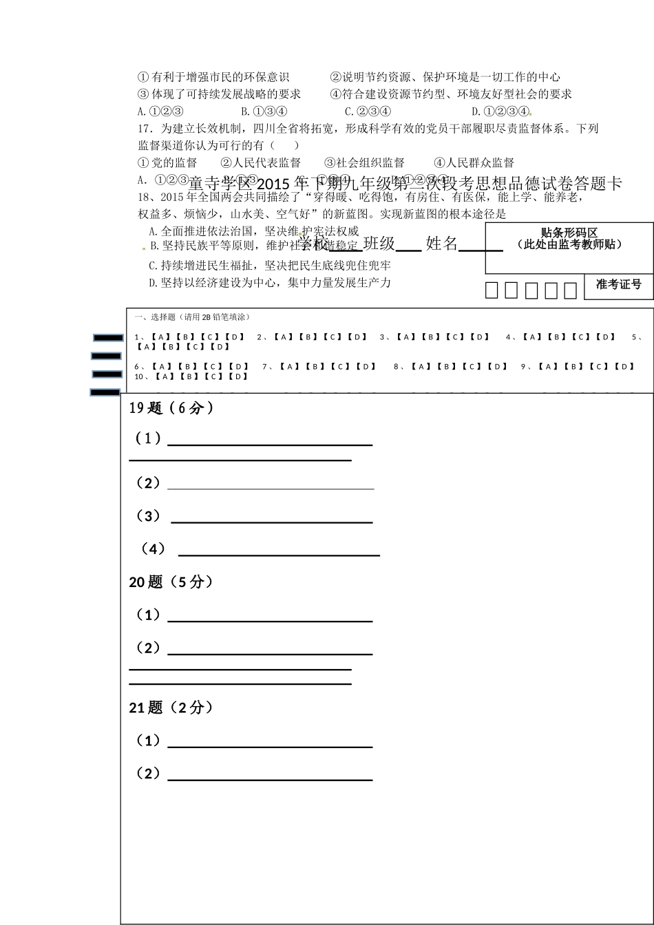 绝密★启用前童寺学区2015年下期九年级第二次段考试题思想品德考试范围:1-16课;考试时间:政史90分钟;注意事项:1.答题前填写好自己的姓名、班级、考号等信息2.请将答案正确填写在答题卡上[来源:Z,xx,k.Com]...