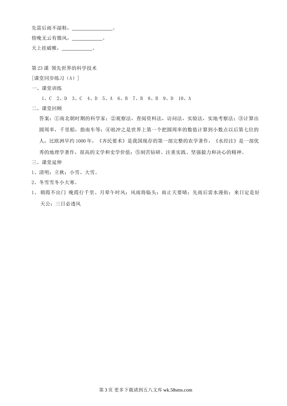 第23课领先世界的科学技术[通过这次练习,意味着你]1.知道祖冲之推算圆周率。2.知道《水经注》《齐民要术》是我国古代地理学、农学著作。3.通过参与讨论、实验、查阅资料等方法获取知识。4.学习三位科学家探...
