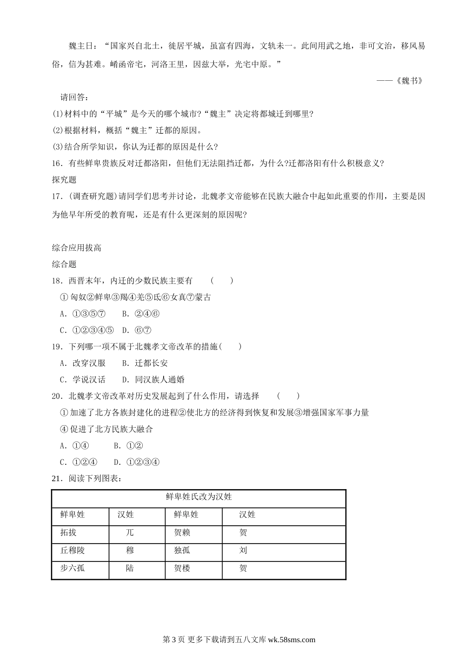 第22课《北方的民族汇聚》同步测试5(北师大版历史七上).doc_第3页