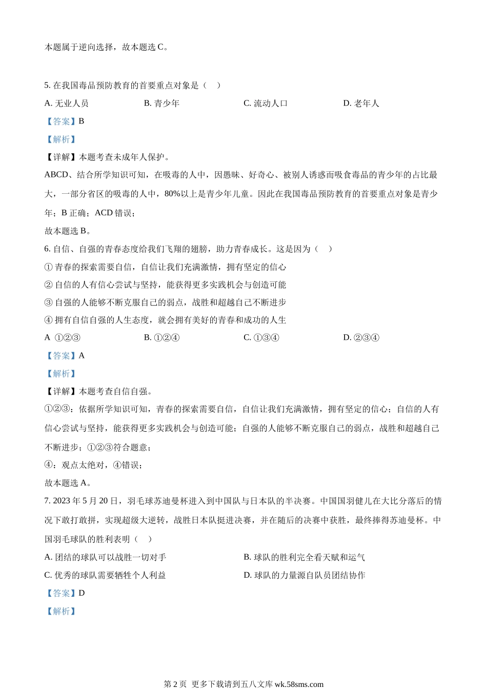 2023年甘肃省金昌市中考道德与法治真题(解析版).docx_第2页