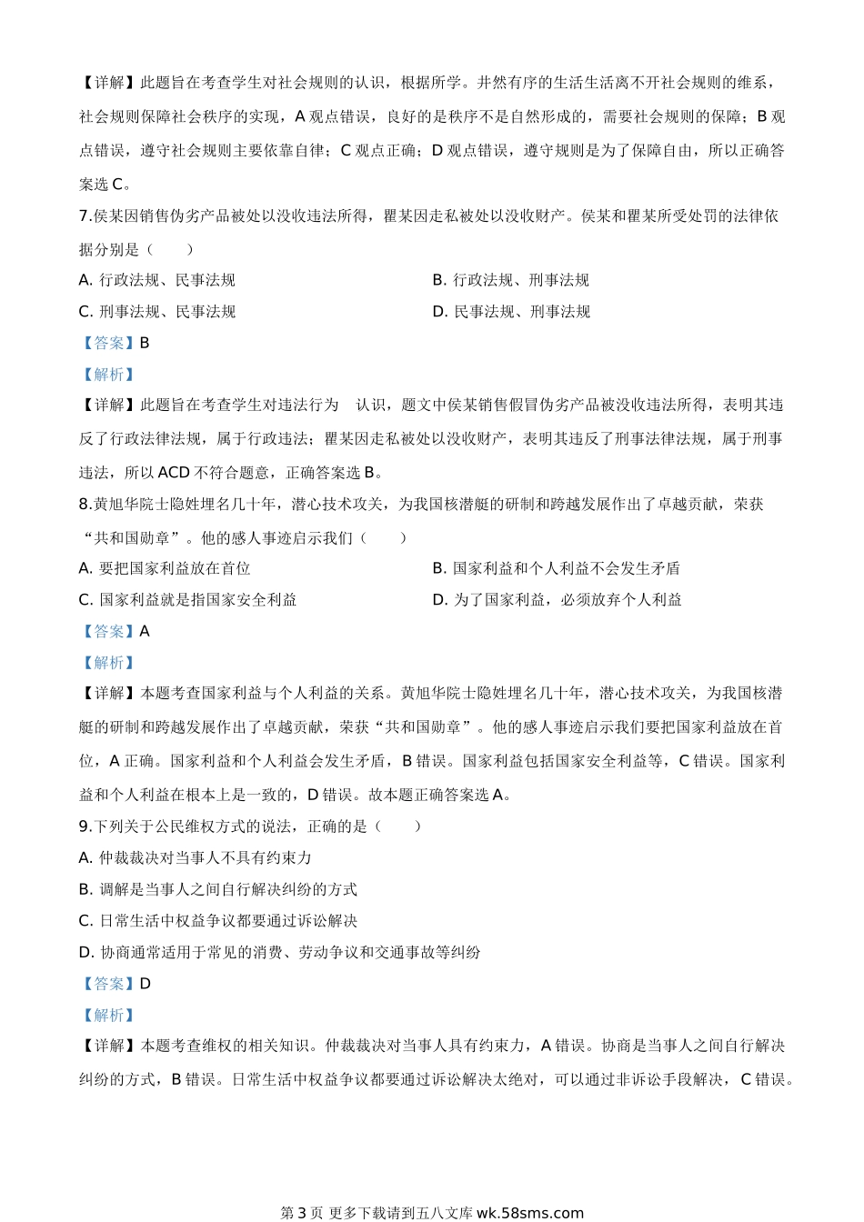 湖北省武汉市2020年中考道德与法治试题(解析版).doc_第3页