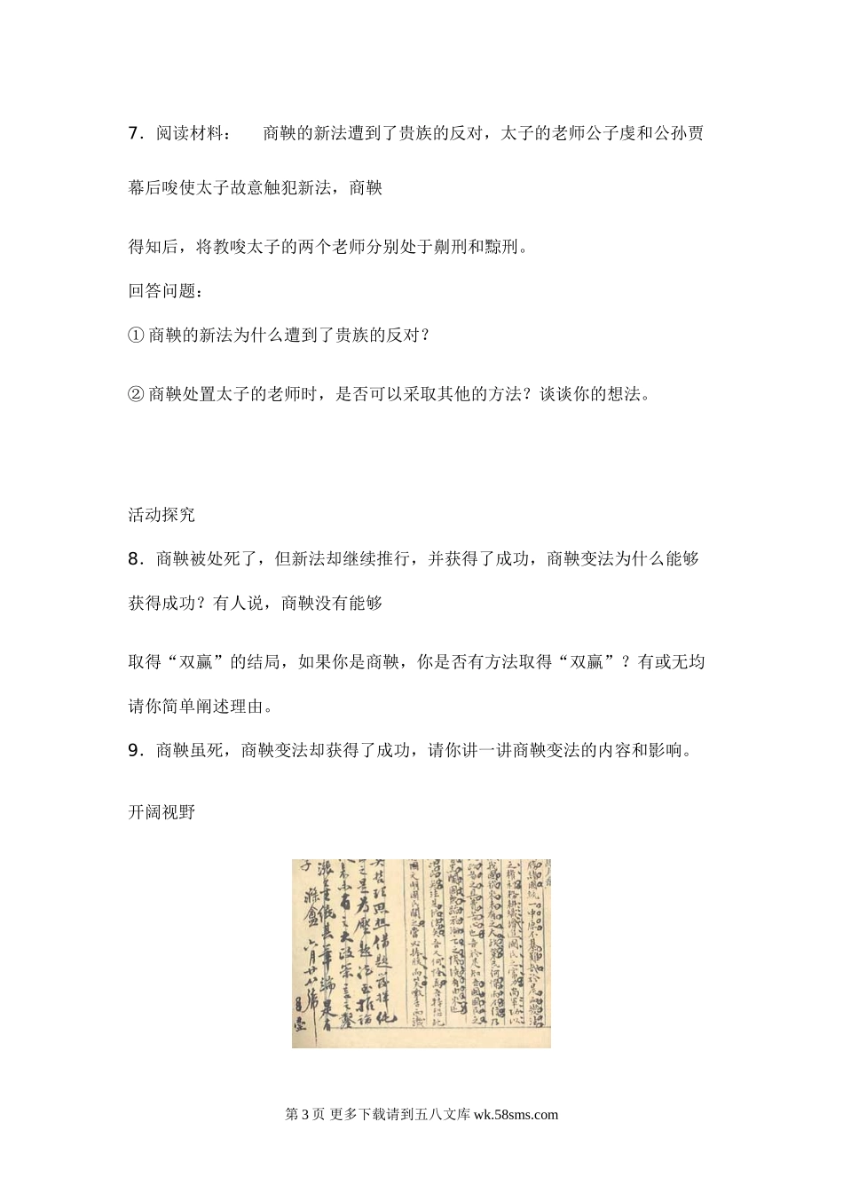 第7课我看商鞅变法-探究活动(一)同步测试(华师版七上).doc_第3页