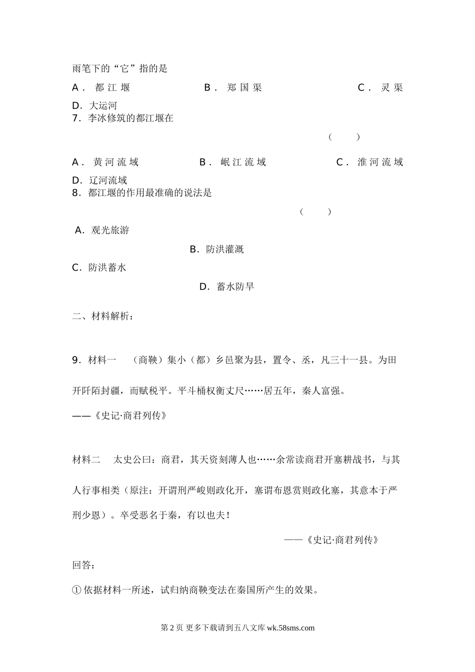 第6课商鞅变法与社会革新同步测试(华师版七上).doc_第2页