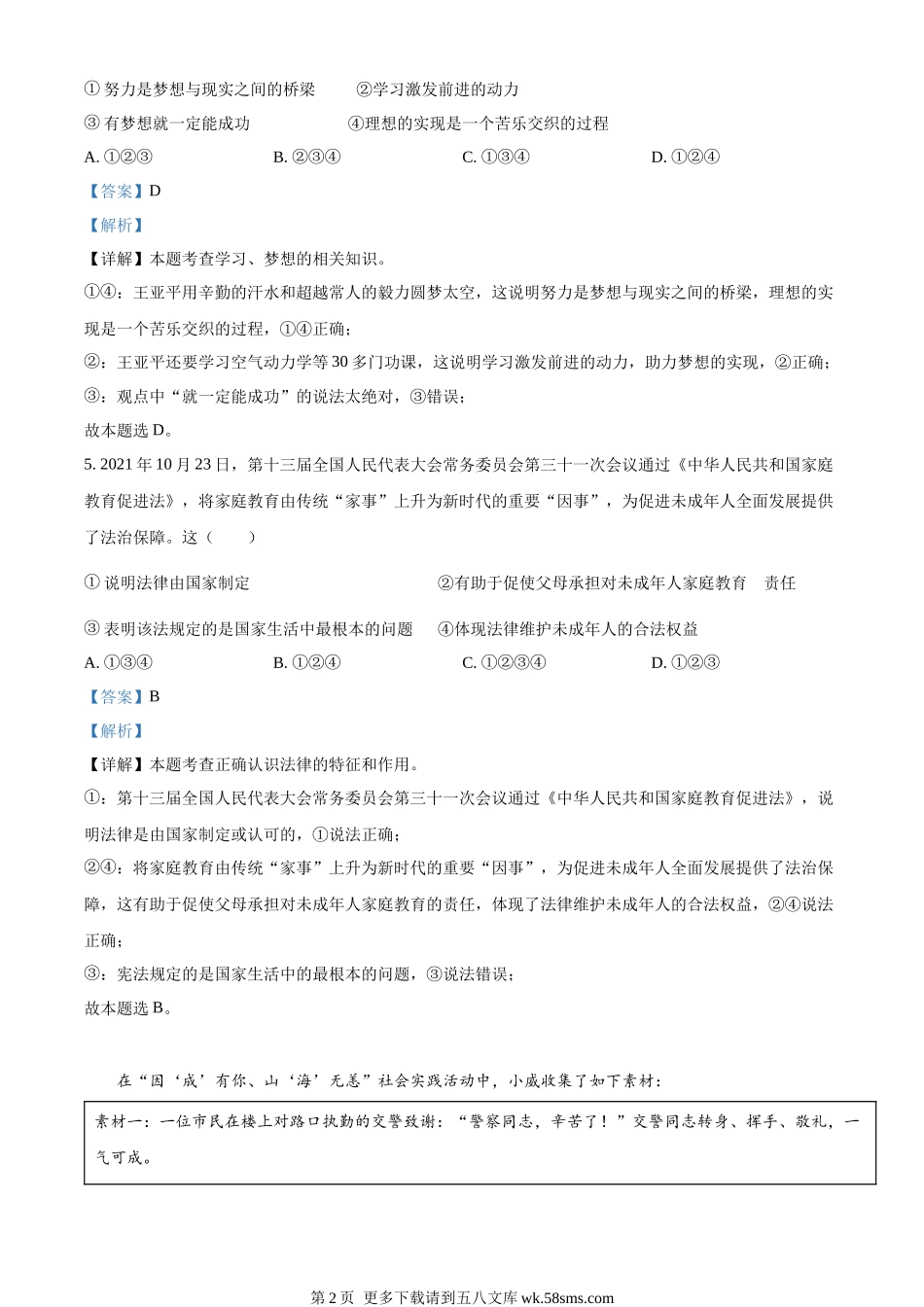 2022年山东省威海市中考道德与法治真题(解析版).docx_第2页