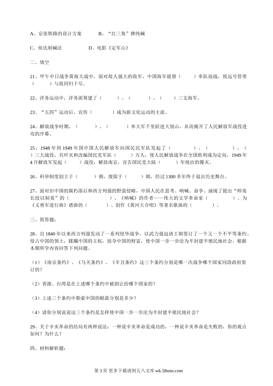 古蔺县2009-2010学年度上学期期末中小学考试八年级历史试题.doc_第3页