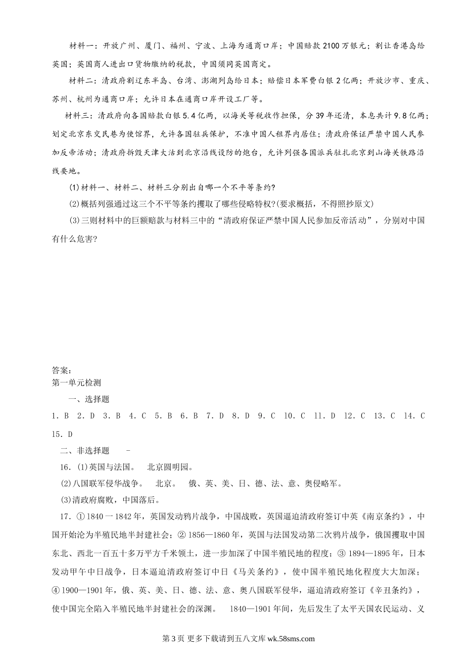 第一单元列强的侵略与中国人民的抗争单元测试2(北师大版八上).doc_第3页