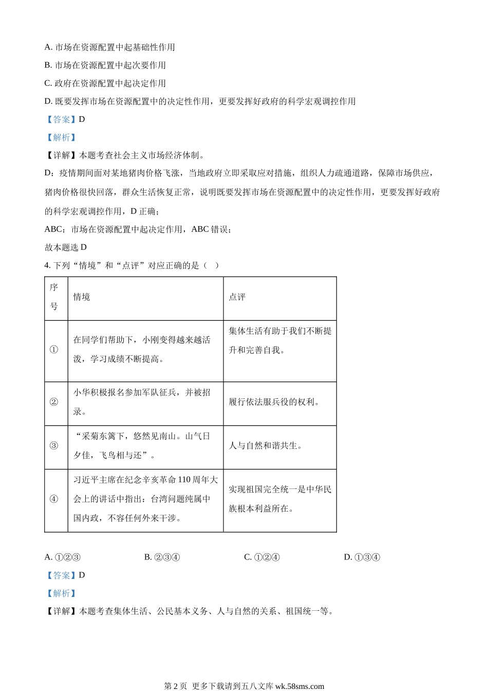 2022年山东省东营市中考道德与法治真题(解析版).docx_第2页