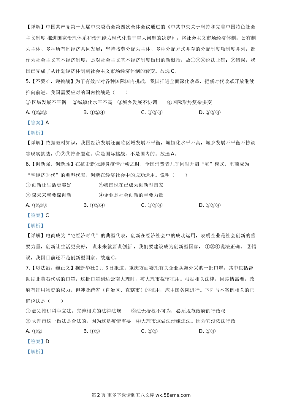 四川省达州市2020年中考道德与法治试题(解析版).doc_第2页