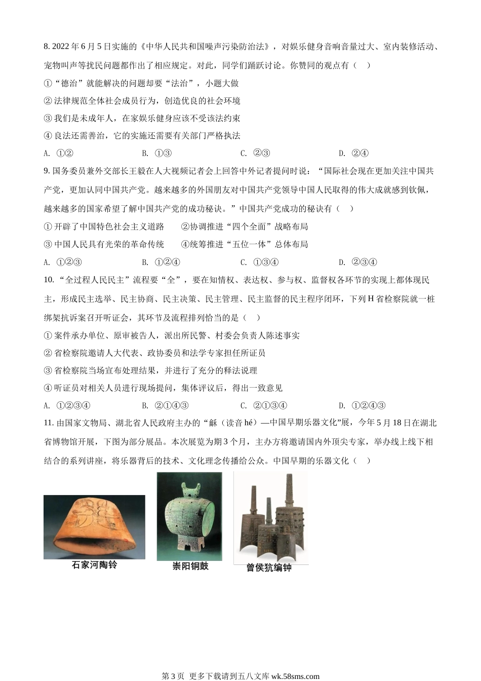 2022年湖北省江汉油田、潜江、天门、仙桃市中考道德与法治真题(原卷版).docx_第3页