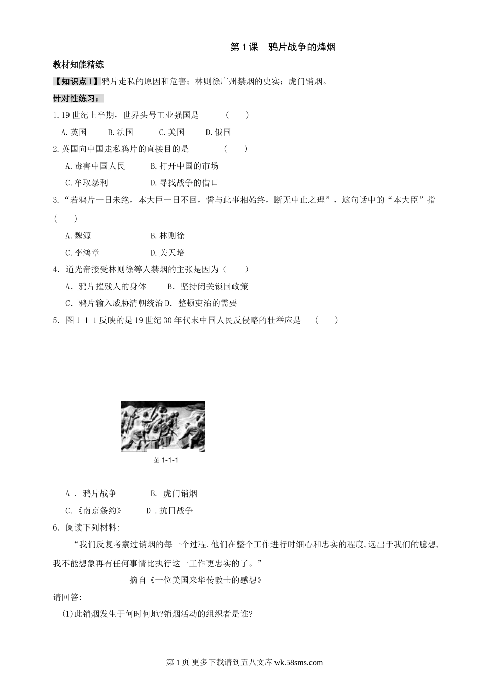 第1课鸦片战争的烽烟同步练习(2(北师大版八上).doc_第1页