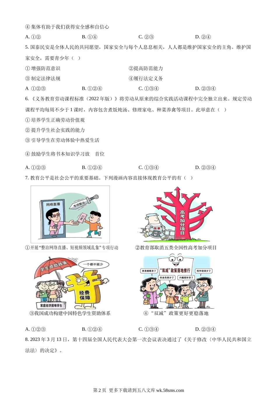 2023年四川省甘孜藏族自治州中考道德与法治真题(原卷版).docx_第2页