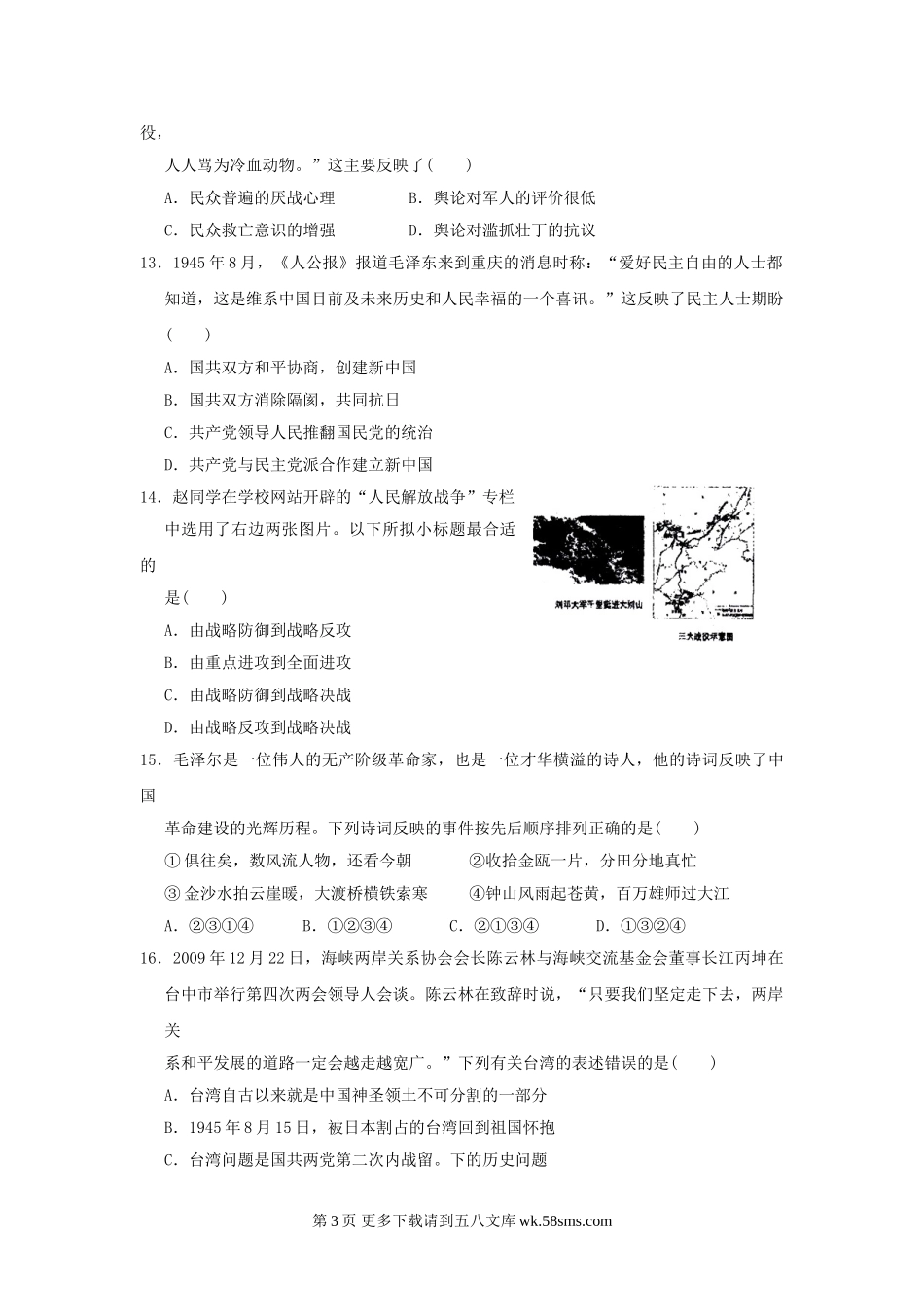 厦门外国语学校2009~2010学年第一学期初二年级期末考历史试卷2010.1.4(满分:100分考试时间:15:30~16:30)温馨提示:所有选择题的答案代码均须誊写在下列答题栏内,填空题和材料解析题应在试卷相应位置作答...