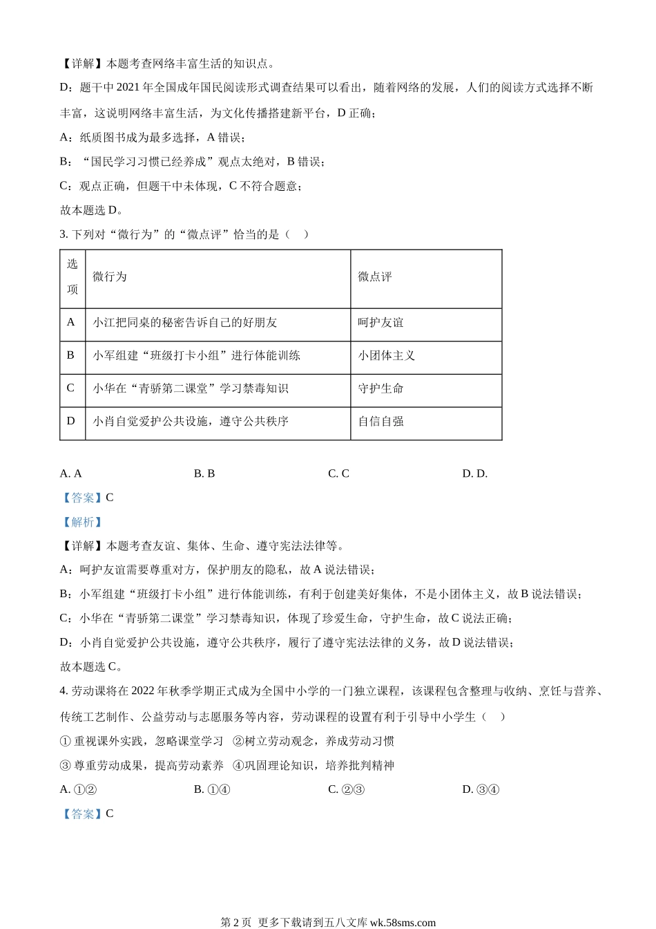 2022年广东省深圳市中考道德与法治真题(解析版).docx_第2页