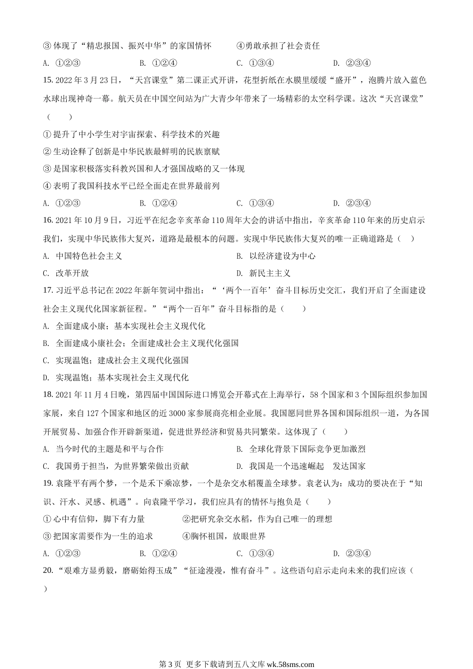 2022年甘肃省金昌市中考道德与法治真题(原卷版).docx_第3页