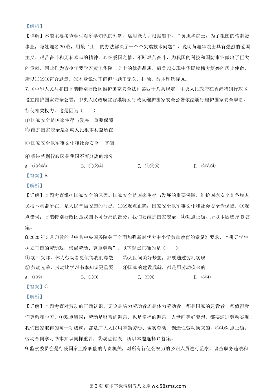 江苏省连云港2020年中考道德与法治试题(解析版).doc_第3页
