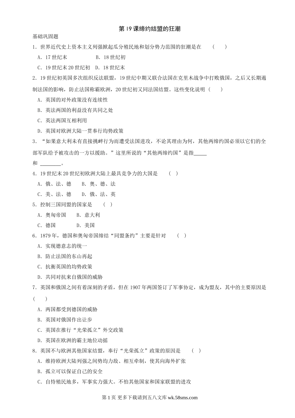 第l9课缔约结盟的狂潮同步练习2.doc_第1页