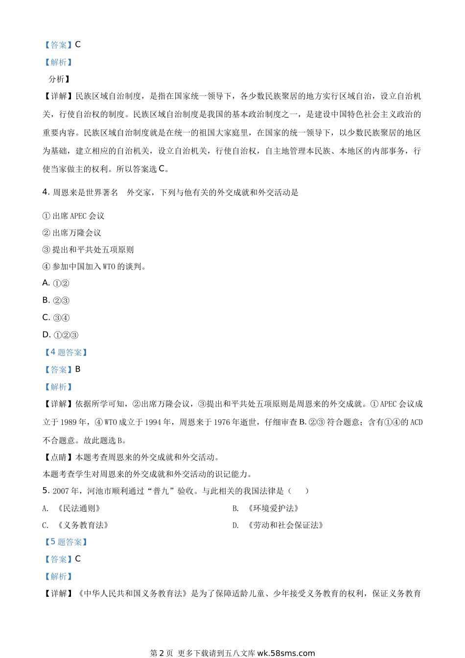 广西自治区河池市2020年中考历史试题(解析版).docx_第2页