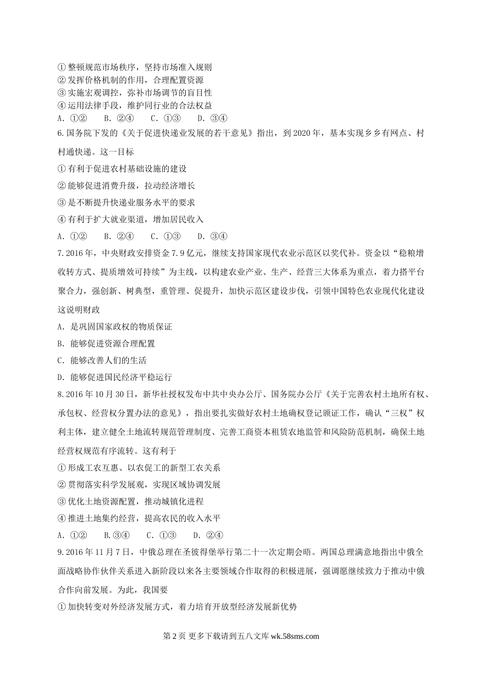 辽源市东辽一中高三上学期期末考试政治试题及答案.doc_第2页