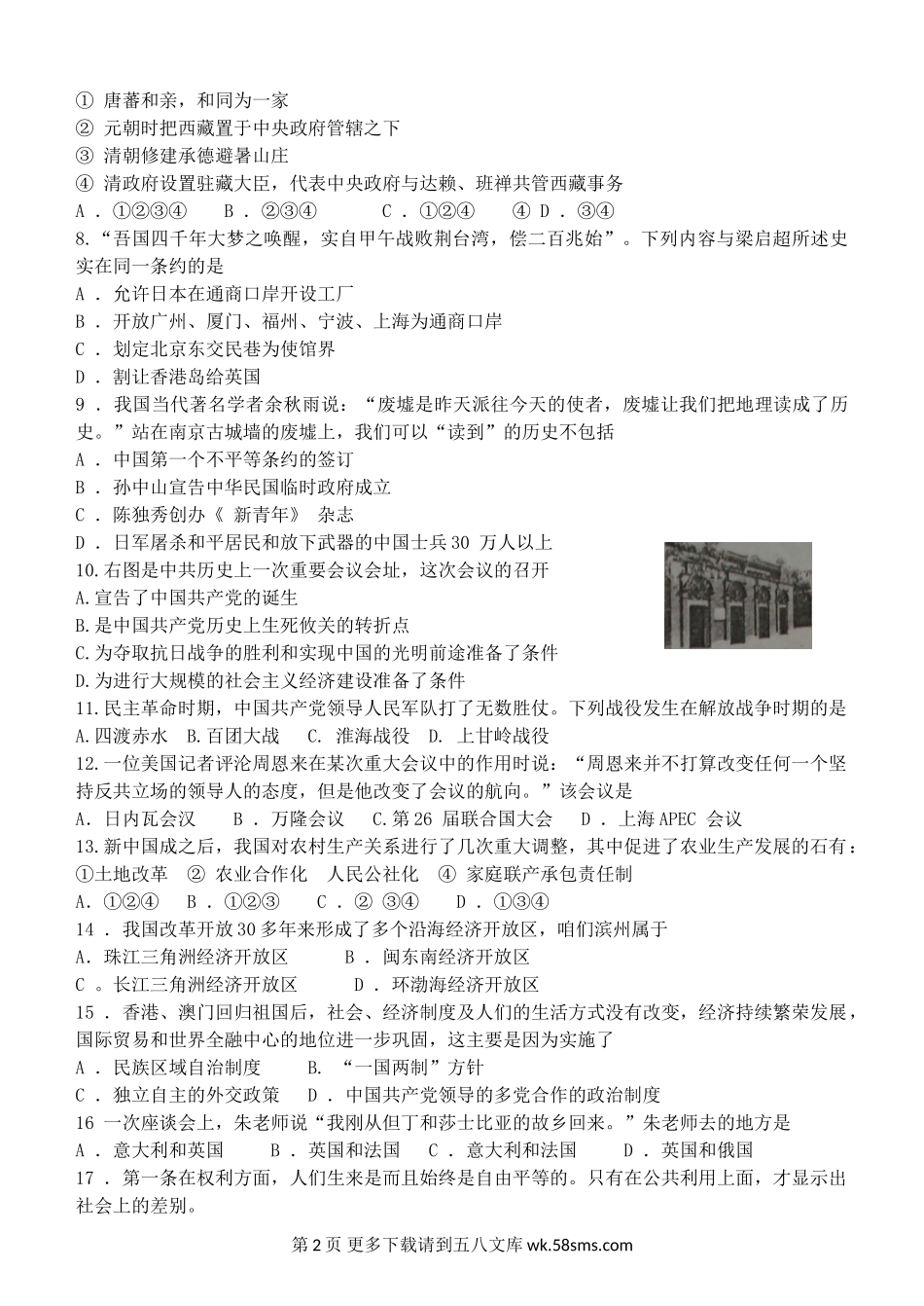 滨州市中考历史试题及答案.doc_第2页