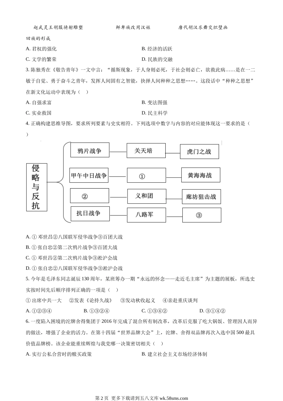 2023年四川省遂宁市中考历史真题(原卷版).docx_第2页