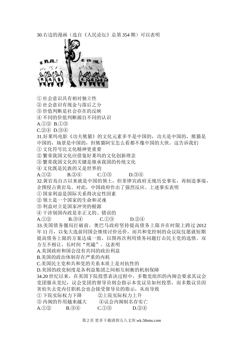 2012浙江高考文综政治试题及答案.doc_第2页